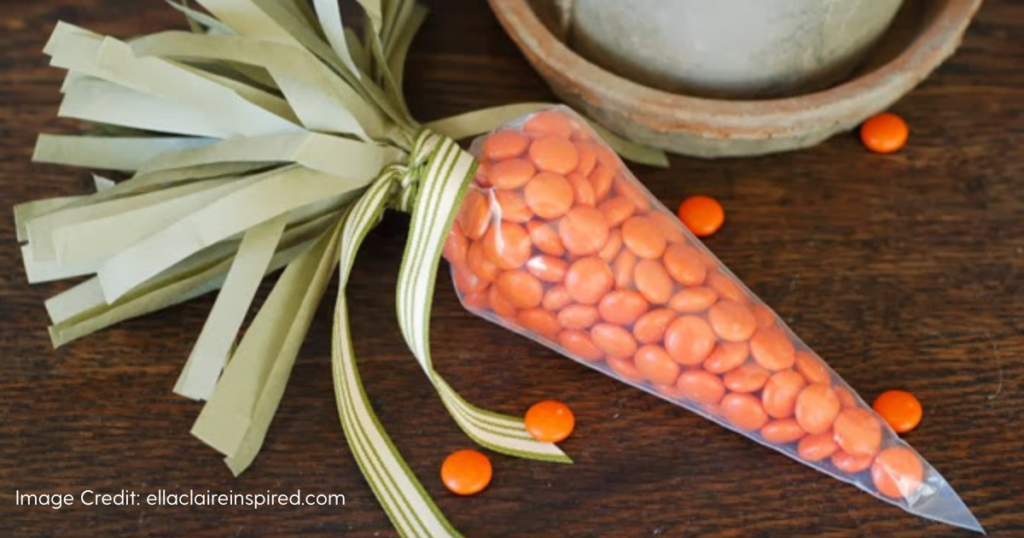 - Tie a piece of green ribbon around the top for a cute carrot top finish!